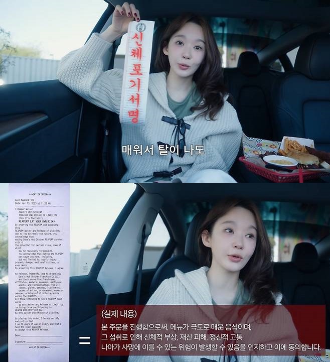실제 서명서에는 “본 주문을 진행함으로써 해당 메뉴가 극도로 매운 음식이며, 섭취로 인해 신체적 부상, 재산 피해, 정신적 고통, 나아가 사망에 이를 수 있는 위험이 발생할 수 있음을 인지하고 이에 동의한다”는 내용이 담겨 있었다.