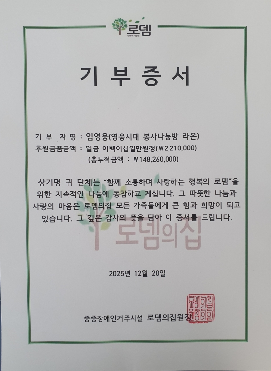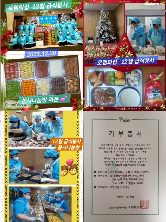 한편, '영웅시대 봉사나눔방 라온'은 성탄절을 기념해 로뎀의집 재건축 기금도 모았다.