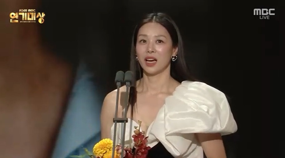 이날 배우 장신영이 2025 MBC 연기대상 '최우수연기상 -일일드라마, 단막 부문'을 수상했다.