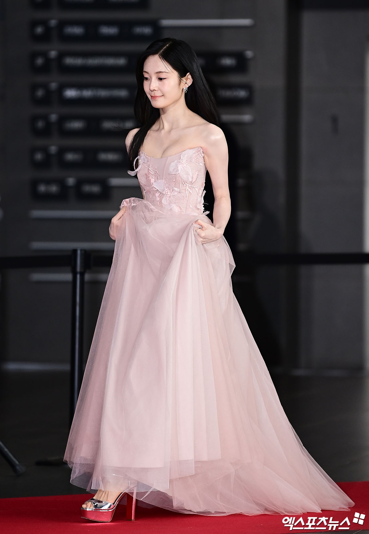 이날 레드카펫 행사에 참석한 배우 우다비가 포토타임을 갖고 있다.