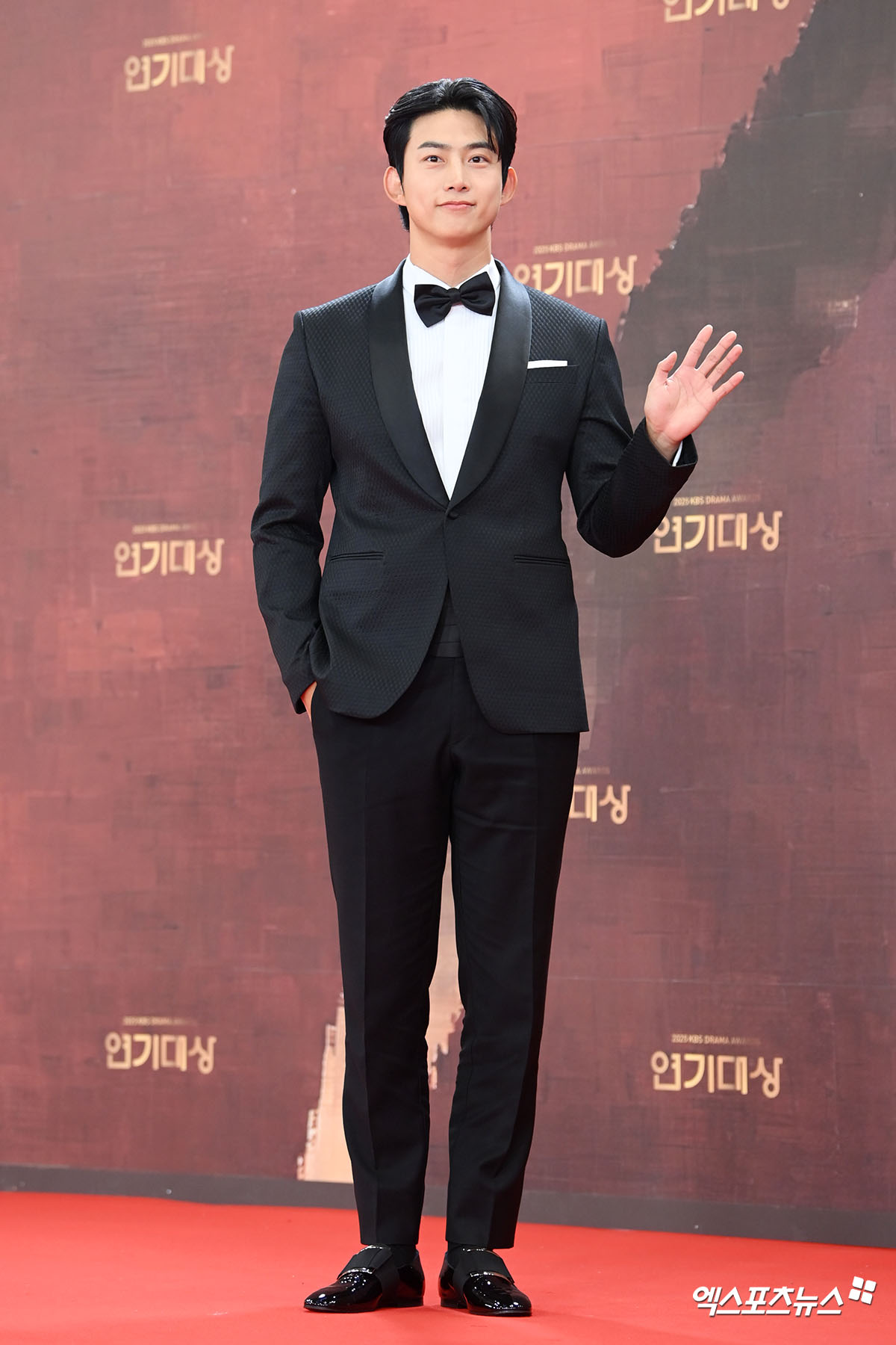 이날 시상식에 참석한 배우 옥택연이 포토타임을 갖고 있다.