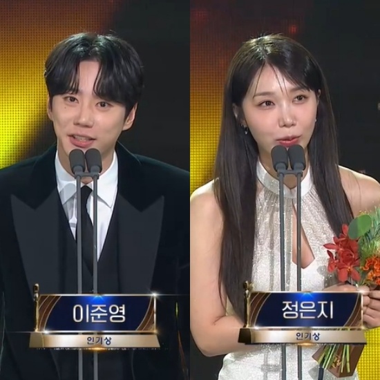 (엑스포츠뉴스 이창규 기자) '2025 KBS 연기대상' 이준영, 정은지가 인기상을 수상했다.