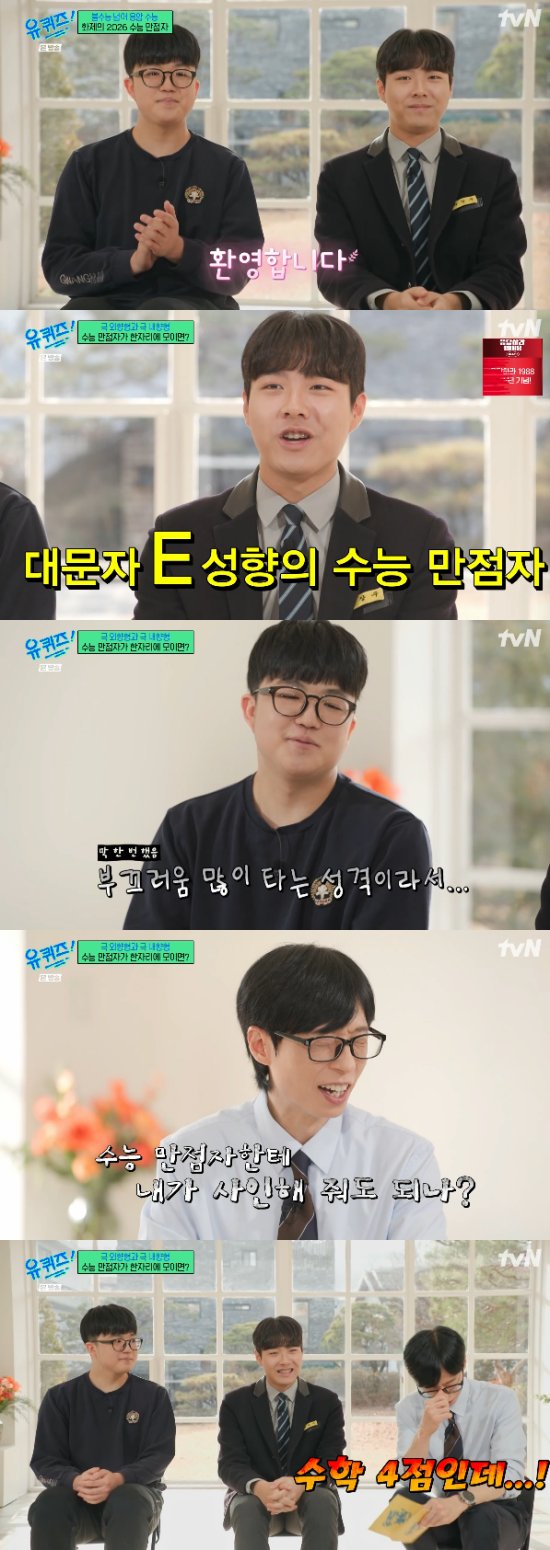 이에 유재석은 "내가 수능 만점자한테 사인을 해줘도 되나? 수학 4점인데..."라면서 민망해해 웃음을 자아냈다.