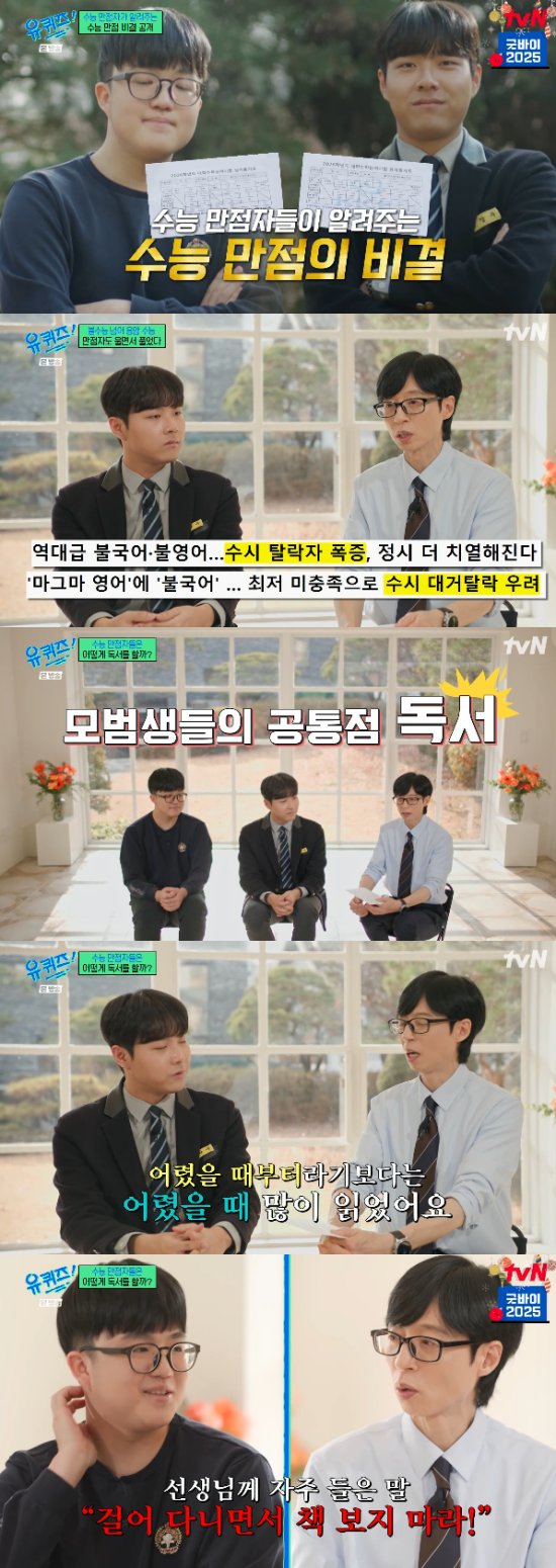 (엑스포츠뉴스 오수정 기자) '유퀴즈'에서 유재석이 수능 만점자들과 만났다.