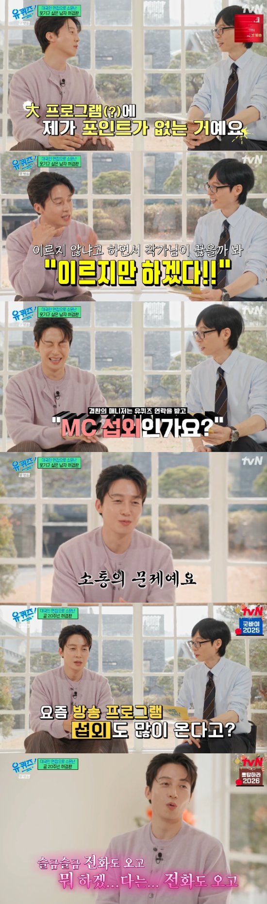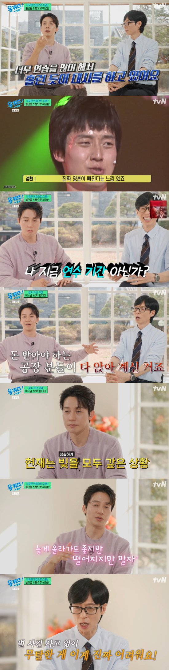 그리고 허경환은 "저는 늦게 올라가도 좋지만, 떨어지지는 말자는 생각이다. '유퀴즈'는 저한테 그냥 바라보는 프로그램 중 하나였다. 근데 이렇게 '유퀴즈'까지 나왔으니 자기 관리 잘하면서 유지를 잘 했으면 좋겠다고 싶다"고 했다.
