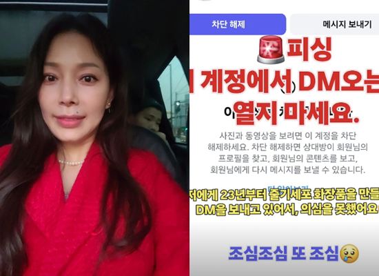 또한 그는 "저에게 23년부터 줄기세포 화장품을 만들자고 DM을 보내고 있어서 의심을 못했어요. 조심 또 조심"이라며 의심 없이 피싱사이트에 접속하게 된 이유를 설명했다.