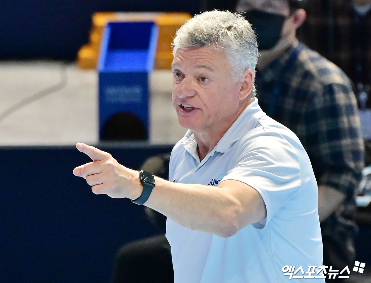 (엑스포츠뉴스 인천, 김한준 기자) 1일 오후 인천 계양체육관에서 열린 '진에어 2025-2026 V-리그' 대한항공과 삼성화재의 경기, 대한항공 헤난 감독이 작전을 지시하고 있다.