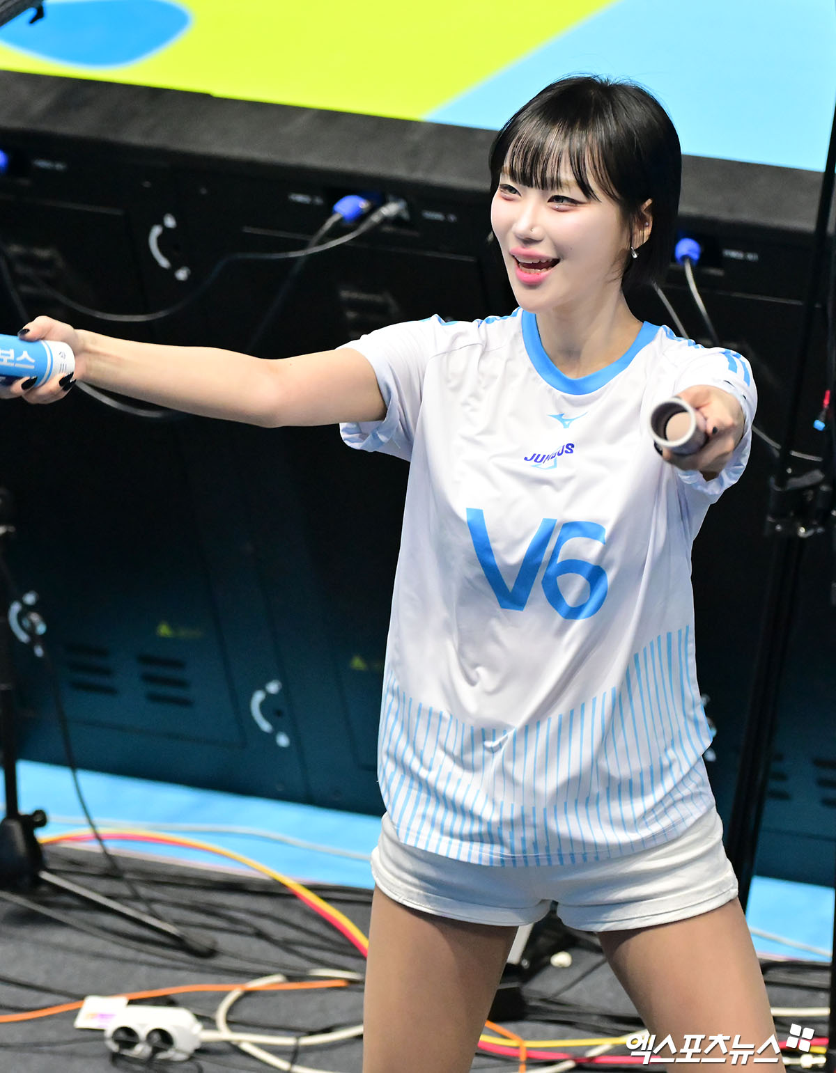 (엑스포츠뉴스 인천, 김한준 기자) 1일 오후 인천 계양체육관에서 열린 '진에어 2025-2026 V-리그' 대한항공과 삼성화재의 경기, 백지혜 치어리더가 열띤 응원을 선보이고 있다.