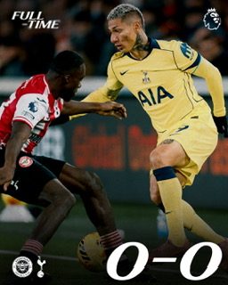 2일(한국시간) 영국 런던 지테크 커뮤니티 스타디움에서 열린 토트넘 홋스퍼와 브렌트퍼드의 2025-2026시즌 잉글리시 프리미어리그(EPL) 19라운드 맞대결은 헛심 공방 끝에 득점 없는 0-0 무승부로 끝났다.