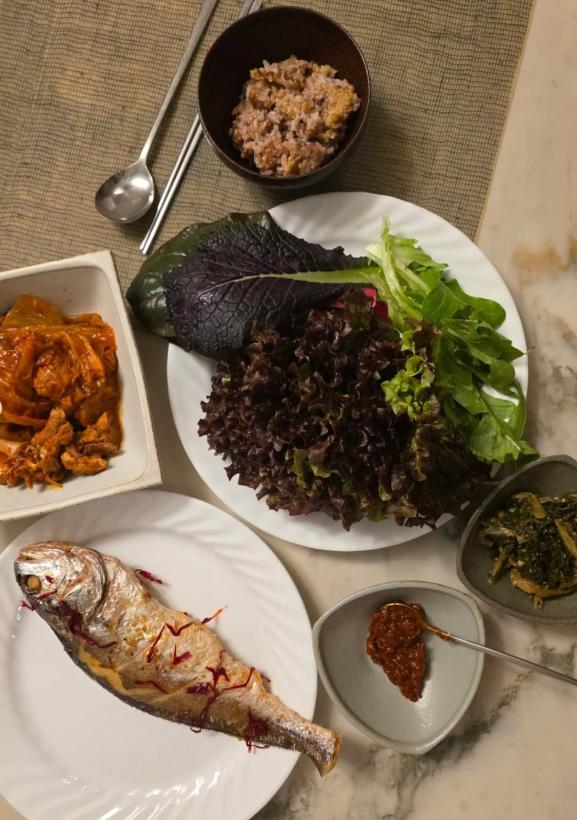 공개된 사진에는 가족들이 함께 나눈 푸짐한 점심 상차림과 더불어, 소박하지만 정성이 담긴 저녁 식사가 담겨 눈길을 끌었다. 점심 식사 후 저녁 메뉴로는 남은 굴비찜과 직접 만든 등갈비김치찜 중 김치만 활용한 메뉴, 선물 받은 채소 쌈과 ‘흑백요리사’를 보고 흉내 냈다는 쌈장, 지인의 손맛이 담긴 우거지, 그리고 저속 노화를 위한 잡곡밥이 차려졌다.