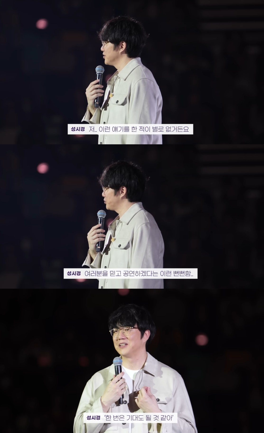 콘서트 소감을 위해 마이크를 쥔 성시경은 "저 이런 얘기를 한 적이 별로 없다. 여러분을 믿고 공연하겠다는 뻔뻔함"이라고 말문을 열었다.