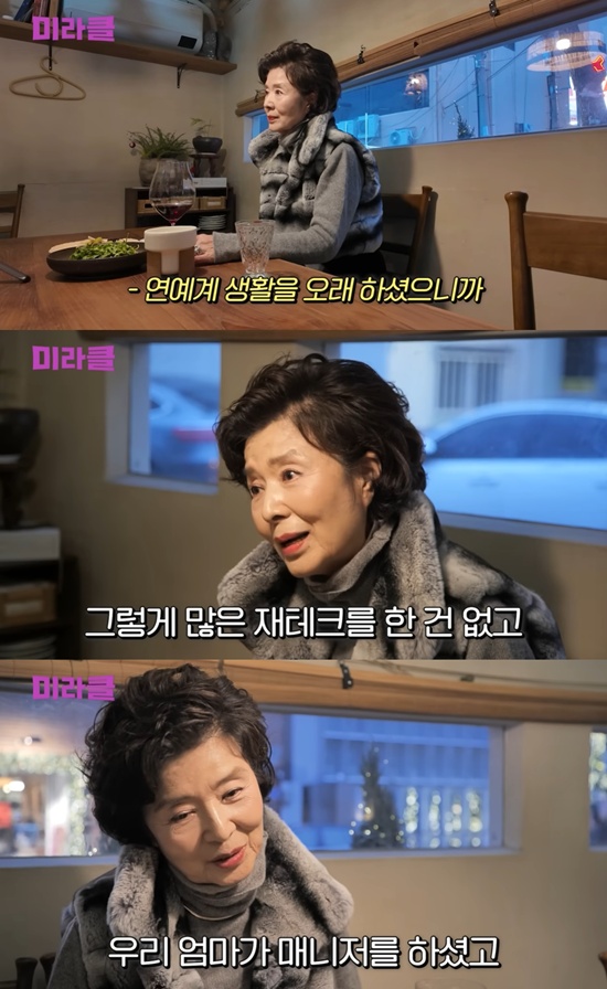 윤미라는 "신인 때는 우리 엄마가 매니저를 하셨고, TV하면서부터 이제 엄마 그냥 돈 관리만 하셨다"며 "돌아가신 지 한 3년 됐다. 엄마한테 모든 걸 다 감사해야 한다"고 말했다.
