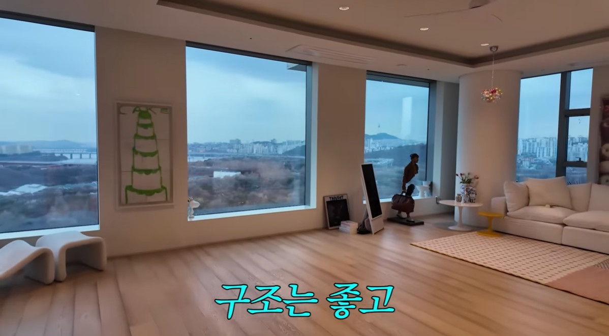 한강뷰 거실을 본 역술가는 입구는 좁고 내부가 넓어지는 구조가 좋다며 "거실 쪽에서 열리는 구조가 좋다. 현관에서 창이 마주 보이는 게 좋지 않은데 꺾어서 창을 보니 좋다"고 설명했다.