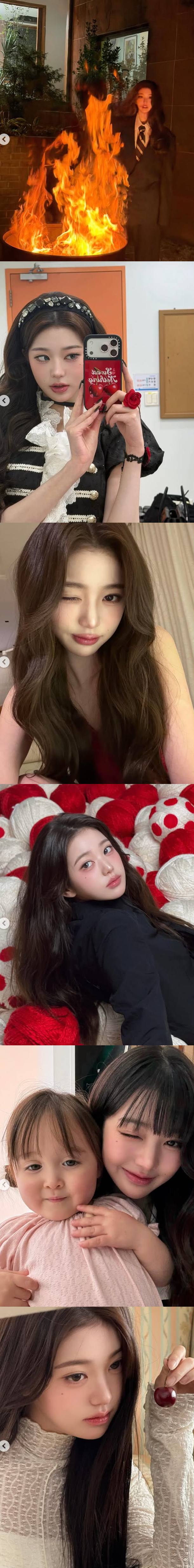 장원영은 지난 1일 자신의 SNS에 새해 인사와 함께 여러 장의 사진을 업로드했다. 공개된 사진에는 불꽃이 타오르는 야외 공간에서 포즈를 취한 모습부터 무대 의상을 입고 거울 셀카를 찍은 모습, 윙크를 하거나 체리 소품을 들고 카메라를 응시하는 모습 등이 담겼다. 인형에 둘러싸여 포즈를 취한 사진에서는 특유의 인형 같은 비주얼도 눈길을 끌었다.