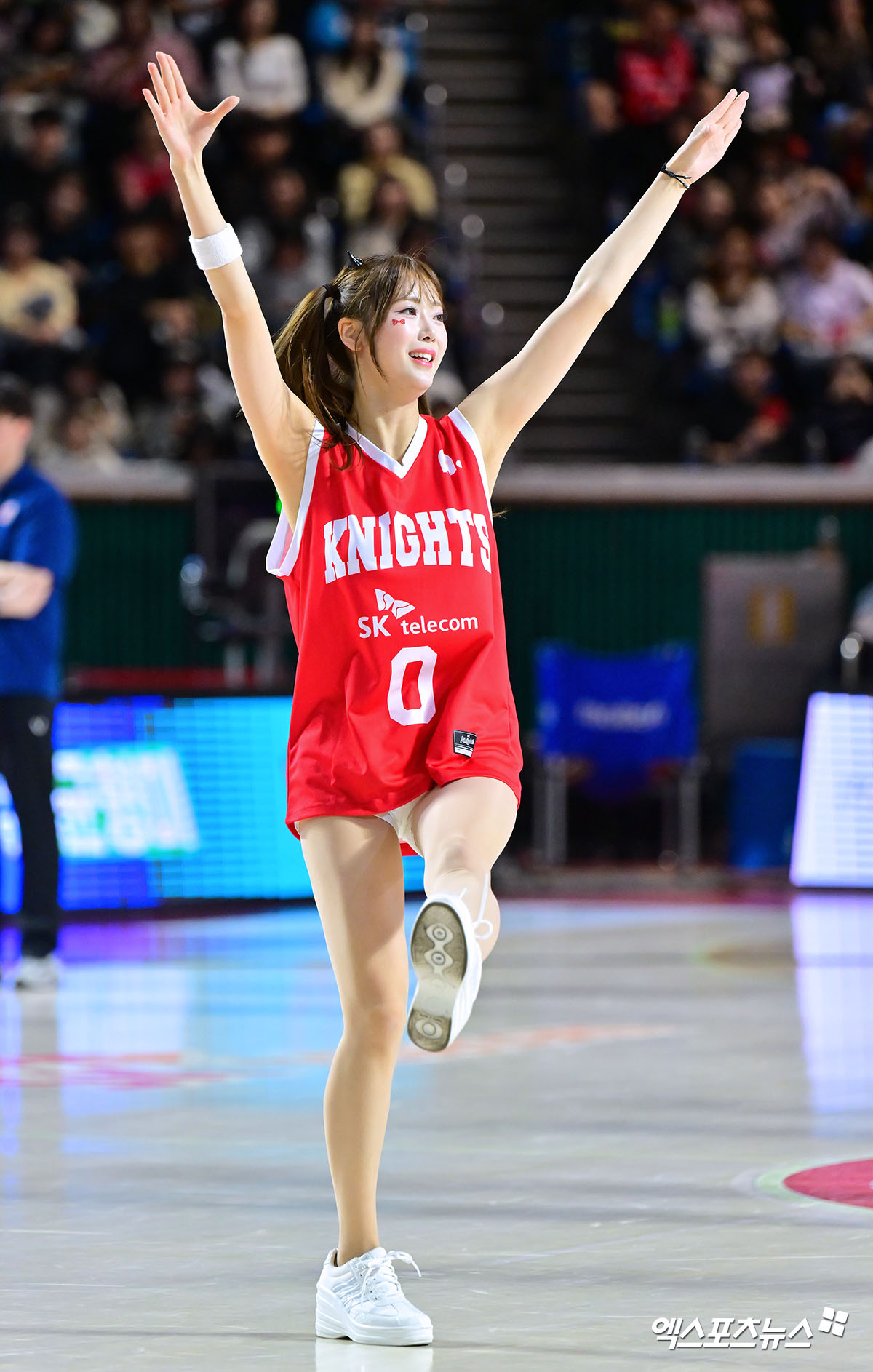 (엑스포츠뉴스 잠실학생체, 김한준 기자) 3일 오후 서울 송파구 잠실학생체육관에서 열린 2025-2026 LG전자 프로농구 서울 SK와 안양 정관장의 경기, 아야카 치어리더가 열띤 응원을 선보이고 있다.