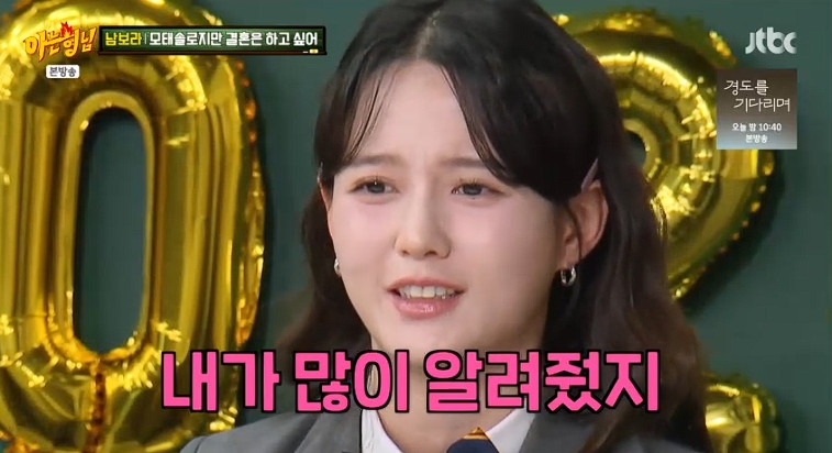 남보라는 '아형 대표 모솔' 김영철에게 "모솔도 희망을 가져라. 이렇게 바로 결혼할 수 있다"며 응원 멘트를 던지고는 "내가 서른셋에 처음 만났는데, 당연히 모태솔로라고 생각을 안 하는 나이지 않냐"며 남편이 모태솔로임을 알게 된 계기를 알리기 시작했다.