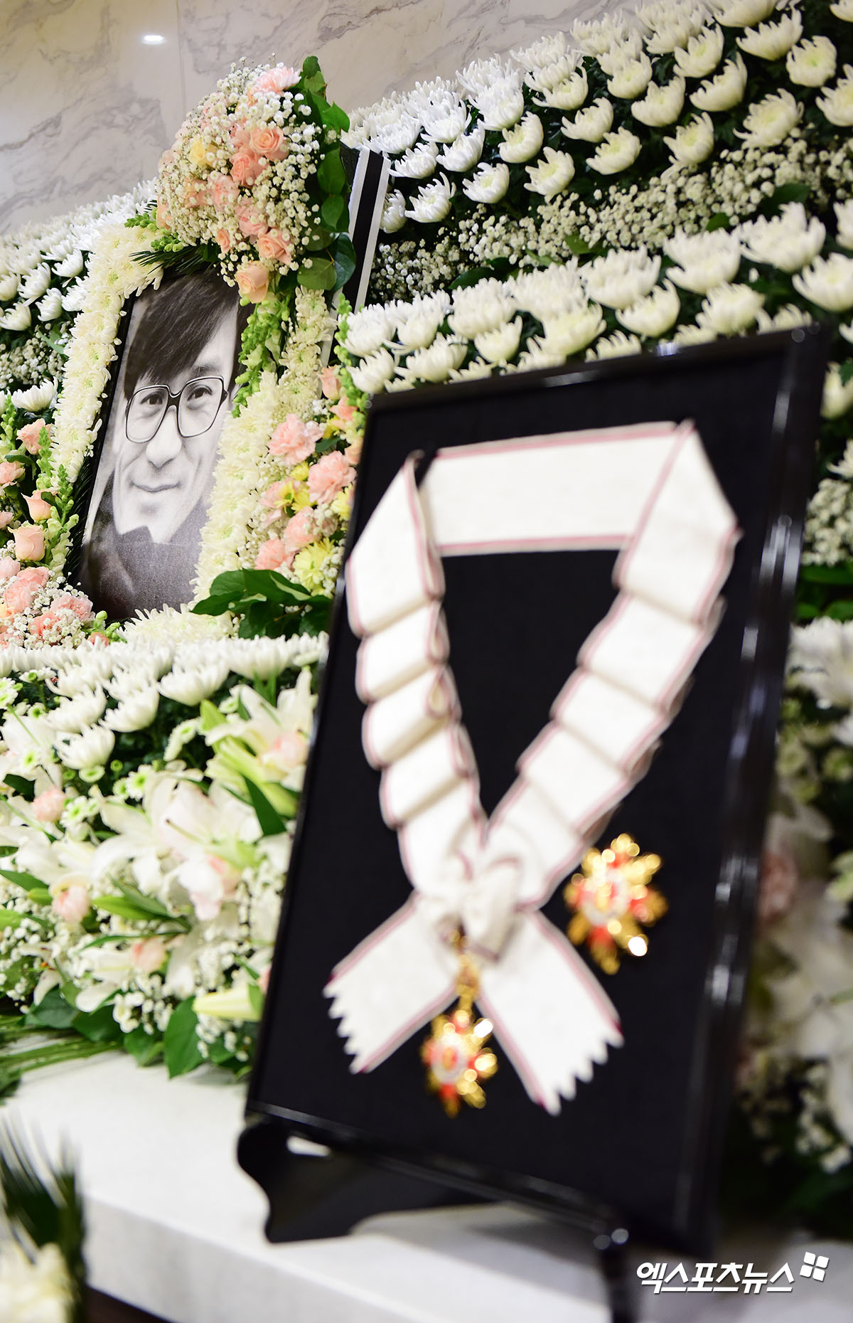 정부가 故 안성기에게 추서한 금관문화훈장이 빈소에 놓여있다.