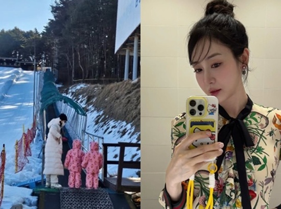 공개된 사진에는 눈이 온 날 쌍둥이 딸과 함께 외출한 성유리의 모습이 담겨 있다.