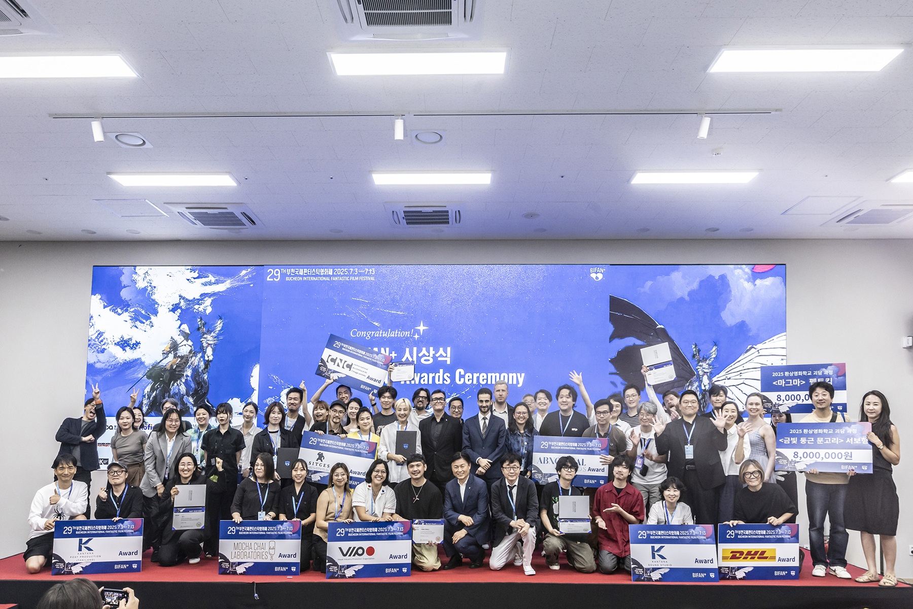 2025년 ‘BIFAN+ 시상식’에서 프로젝트 마켓 수상자들 기념사진. 사진= BIFAN