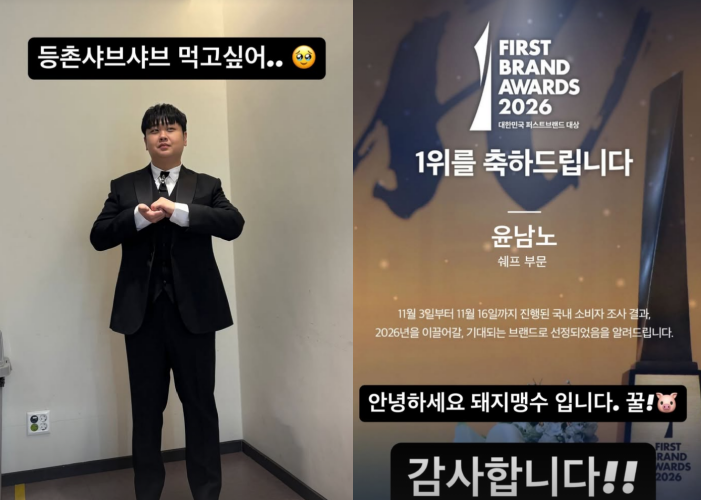 사진에는 '2026 대한민국 퍼스트브랜드 대상'에서 쉐프 부문 수상자로 선정된 윤남노의 모습이 담겼다.