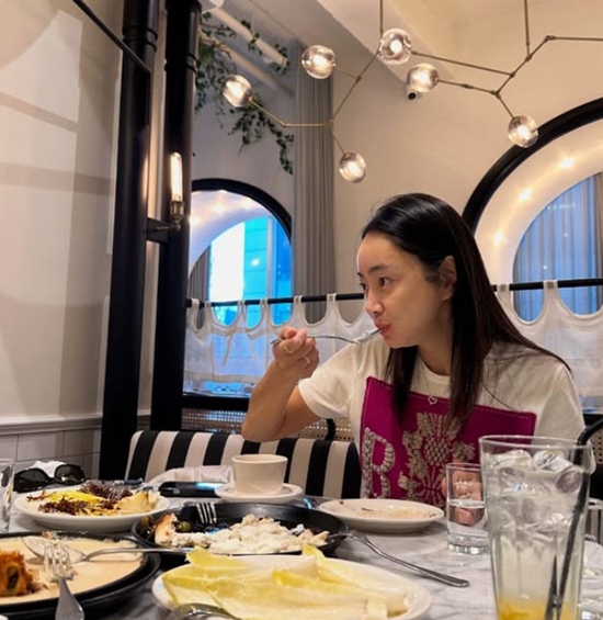 공개된 사진 속 서효림은 식당 테이블 앞에 앉아 다양한 메뉴를 앞에 두고 먹방에 집중했다. 넓은 테이블 위에는 여러 개의 접시가 가득 놓여 있었고, 서효림은 포크를 손에서 놓지 않은 채 음식에 몰두하며 편안하고 자연스러운 분위기를 자아냈다.