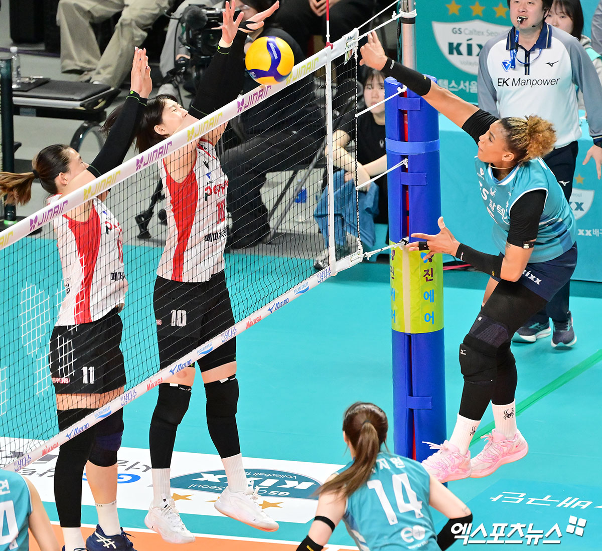 (엑스포츠뉴스 장충, 김한준 기자) 6일 오후 서울 장충체육관에서 열린 '진에어 2025-2026 V-리그' GS칼텍스와 페퍼저축은행의 경기, GS칼텍스 실바가 공격을 시도하고 있다.