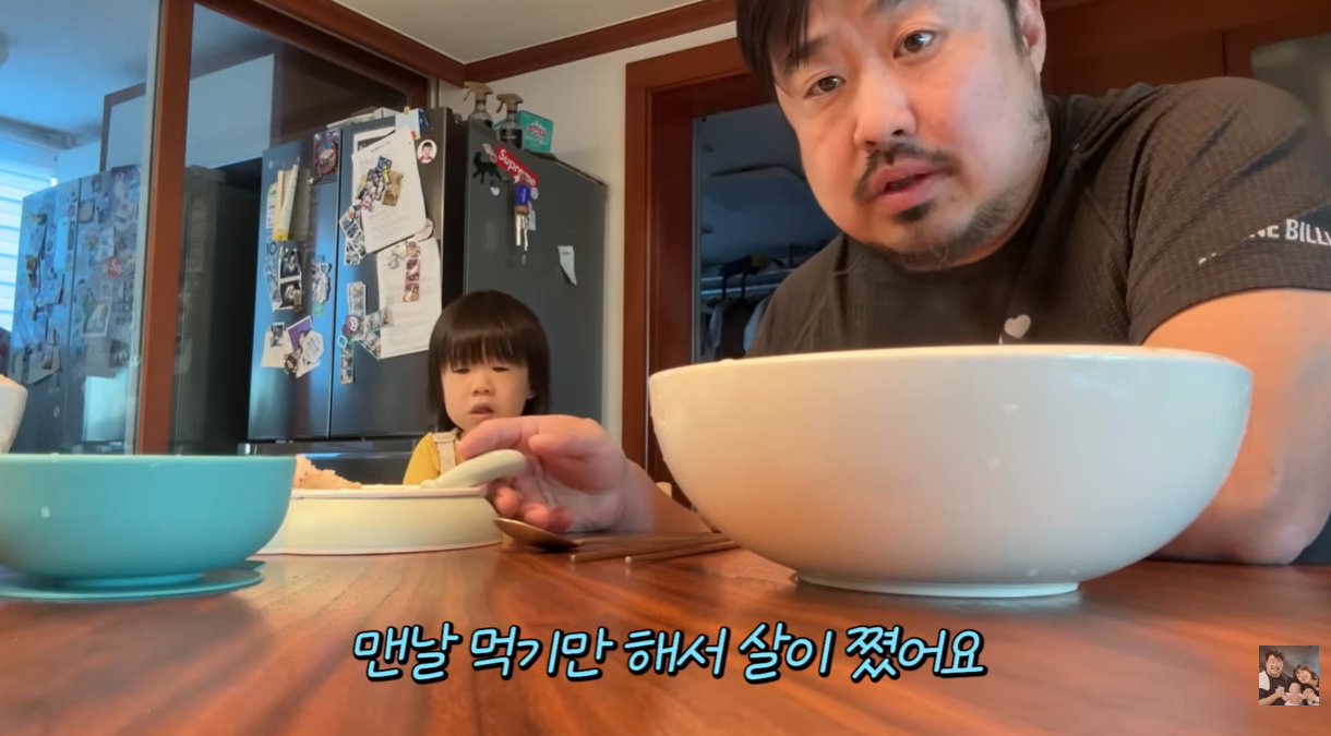 영상에는 새해를 맞아 떡국을 먹는 강재준, 이은형 부부와 아들 현조의 모습이 담겼다. 본격 식사에 앞서 강재준은 "저는 마라톤 이후로 발목이 아파서 뛰질 못했더니 맨날 먹기만 해서 살이 쪘다. 5kg가 쪘다"고 고백했다.