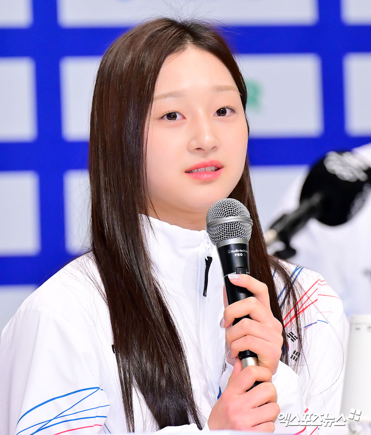 (엑스포츠뉴스 진천, 김한준 기자) 7일 오후 충북 대한체육회 진천국가대표선수촌에서 열린 2026 밀라노코르티나동계올림픽대회 D-30 미디어데이, 신지아가 취재진의 질문에 답하고 있다.