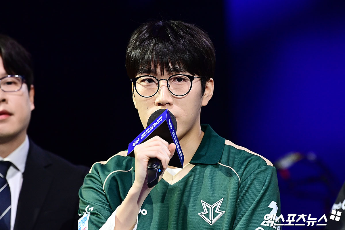 (엑스포츠뉴스 박지영 기자) 7일 오후 서울 청진동 롤파크에서 열린 '2026 LCK컵 미디어데이'에 참석한 브리온 '캐스팅' 신민제가 인사하고 있다.