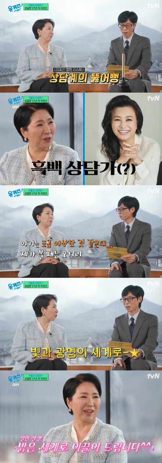7일 방송된 tvN 예능 프로그램 '유 퀴즈 온 더 블럭'에서는 꽉 막힌 속을 뚫어주는 '호랑이 상담가' 이호선 교수가 출연해 이야기를 나눴다.