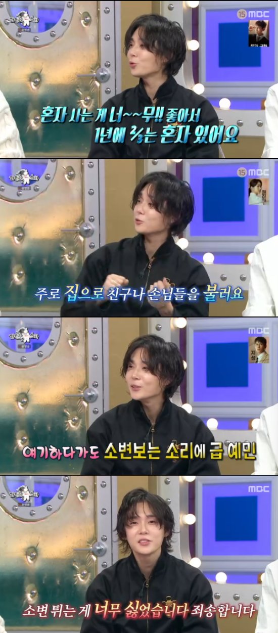 이어 "얘기 나누고 즐거운 시간을 보내는 것을 좋은데, 신경이 쓰이는게 딱 하나 있다. 제가 앉아서 소변을 보는데, 서서 소변을 보는게 너무 신경이 쓰인다. 친한 친구한테는 말을 하는데, 미팅 온 손님에게는 말할 수 없지 않냐. 소리만 들리면 예민해지는거다"면서 웃었다.
