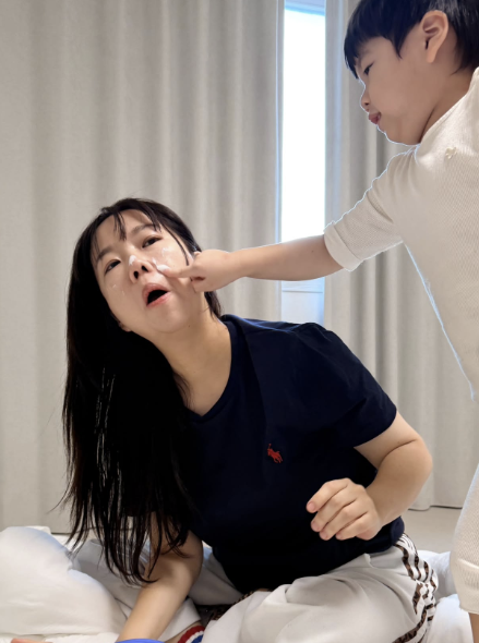 이와 함께 공개한 사진 속에는 해맑은 미소로 로션을 바르고 있는 준범의 모습이 담겼다. 또한 준범이 엄마 홍현희의 얼굴에 로션을 발라주는 코믹한 일상도 공유해 눈길을 끌었다.