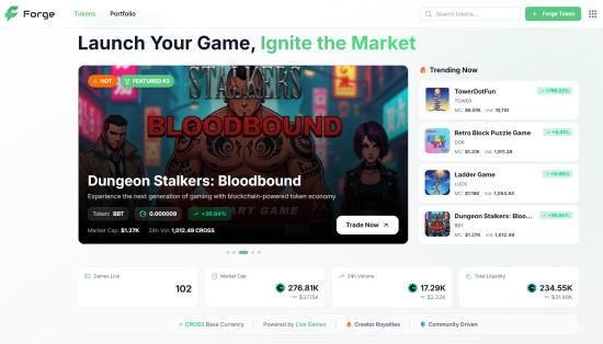 참가자들은 게임을 제작한 뒤 크로쓰 포지를 통해 토큰을 발행하고 유동성을 연결하는 과정까지 직접 구현할 수 있다. 실제로 크로쓰 포지 공식 페이지에서는 토큰이 발행된 게임 목록과 각 게임의 유동성 현황을 한눈에 확인할 수 있다.