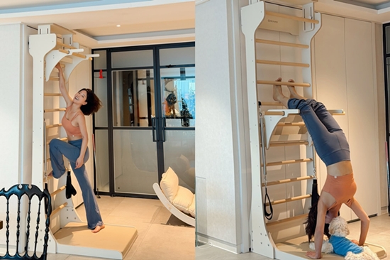 사진 속 기은세는 실내 철봉 기구를 이용해 다양한 동작을 선보이며 유연한 몸매와 건강미를 뽐냈다. 스타일리시한 운동복 차림도 눈길을 끌었다. 탄탄한 복근과 군살 없는 몸매가 돋보였다.