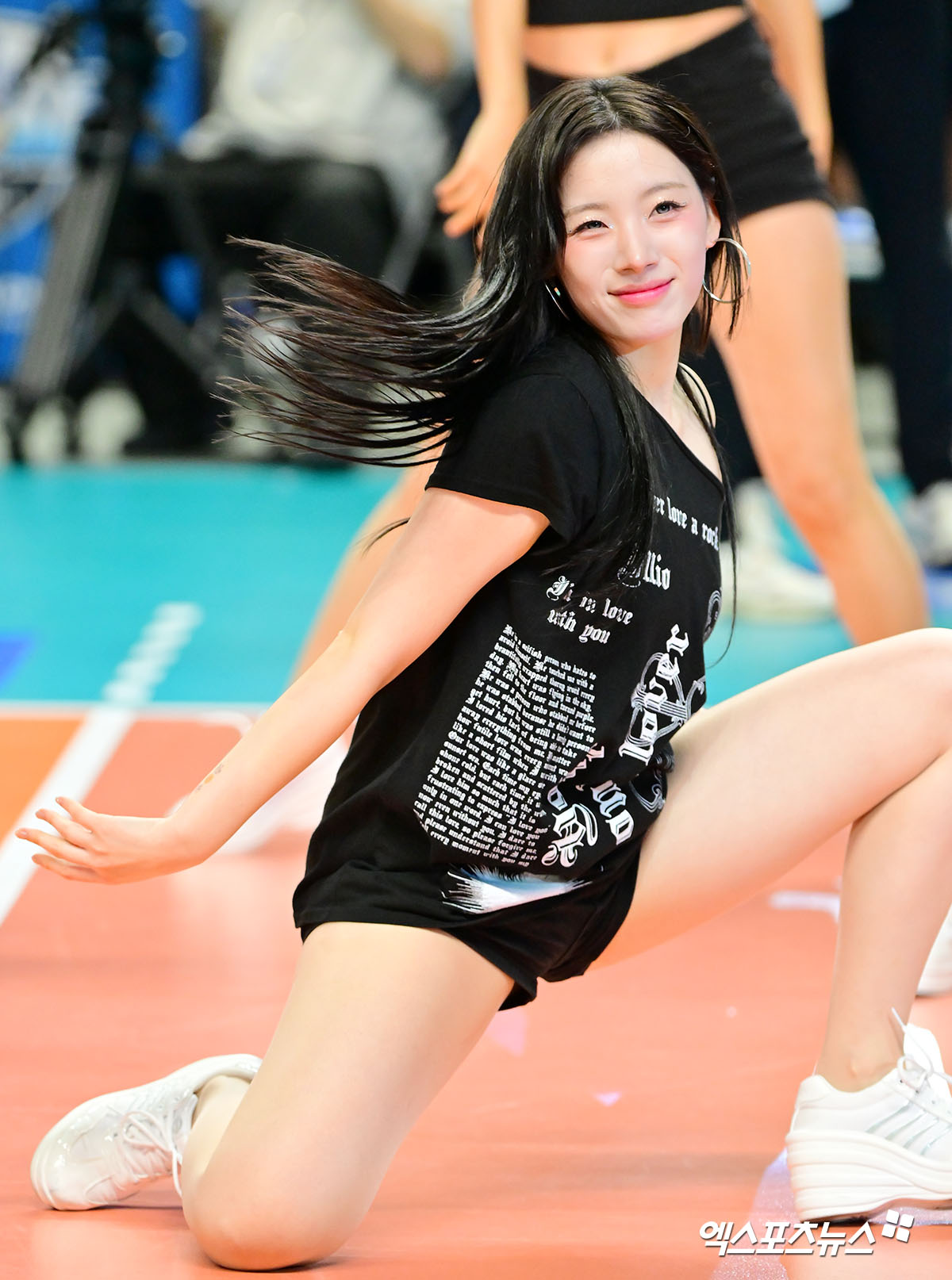 (엑스포츠뉴스 장충, 김한준 기자) 8일 오후 서울 장충체육관에서 열린 '진에어 2025-2026 V-리그' 우리카드와 대한항공의 경기, 하지원 치어리더가 멋진 공연을 선보이고 있다.