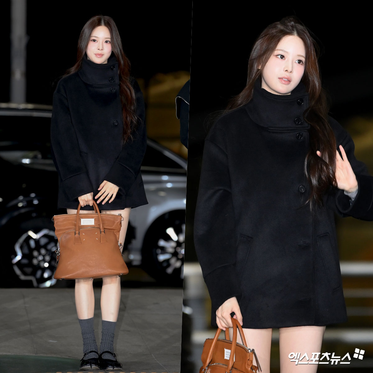 이날 방지민은 블랙 컬러를 중심으로 한 미니멀한 스타일링으로 깔끔한 공항패션을 완성했다. 브라운 컬러의 토트백을 매치해 전체적인 스타일에 따뜻한 포인트를 더했으며, 타비 슈즈로 개성을 살려 감각적인 공항패션을 완성했다. 과하지 않게 정리된 스타일은 밤 시간대에도 더욱 또렷한 인상을 남겼다.