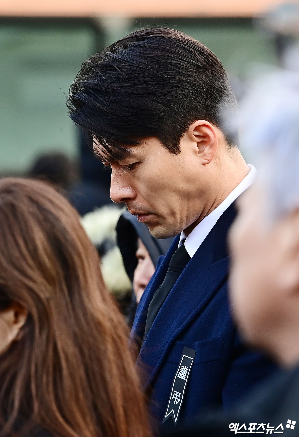 배우 현빈이 미사를 마친 뒤 영결식을 위해 이동하고 있다.