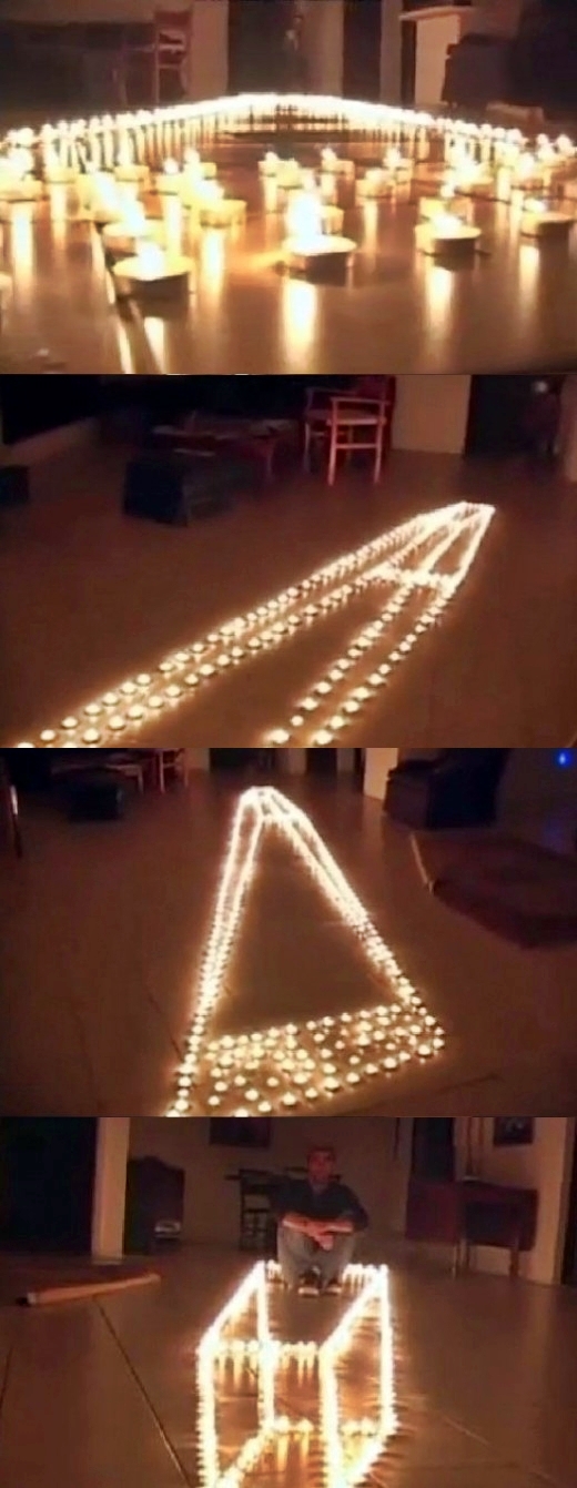 하지만, 이 초들은 카메라 위치를 바꾸자 서서히 모양이 바뀌기 시작, 영상 마지막 단계에서는 상자 모양으로 바뀐 초 위에 한 남성이 올라가 있는 듯한 착시 현상을 일으킨다.