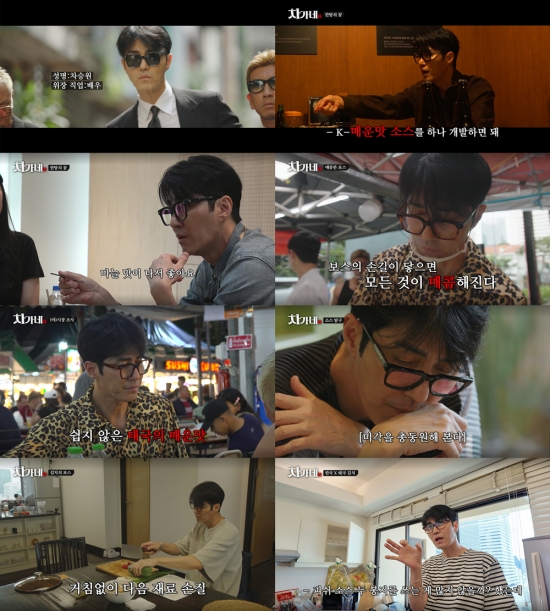 지난 8일 첫 방송된 tvN 리얼 갱스타 시트콤 '차가네' 1회에서는 세계인의 입맛을 사로잡을 매운맛 소스 개발을 목표로, 보스 차승원이 태국 방콕으로 첫 출장을 떠나는 여정이 그려졌다. 검은 정장을 입고 등장한 차승원은 누아르 설정 속에서도 특유의 유머와 현실적인 시선으로 분위기를 장악하며 '차가네'의 서막을 알렸다.