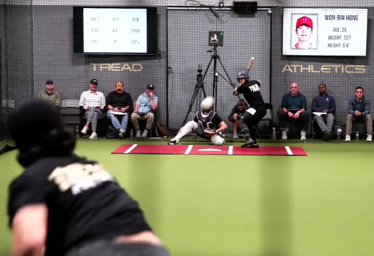 세계적인 야구 트레이닝 시설 중 하나인 '트레드 애슬레틱'은 10일(한국시간) 공식 유튜브 채널을 통해 6시간가량의 투수 실내 피칭 영상을 공개했다. 해당 영상엔 SSG 랜더스 미치 화이트, 한국계 메이저리거인 데인 더닝(애틀랜타 브레이브스) 등 익숙한 얼굴들도 등장했다. 그중에서도 가장 눈길을 끈 건 지난해 현역 은퇴를 선언했던 홍원빈이었다.