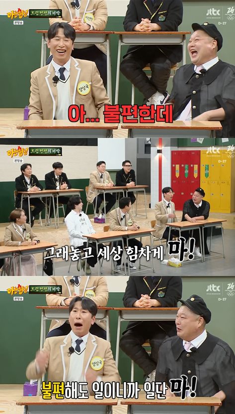 이에 양상국은 제작진을 향해 "자리 체인지는 안 되냐"고 진지한 눈빛으로 물어 현장을 웃음바다로 만들었다. 이어 그는 "이거 안 하든지 바꿔주든가 하이소. 나 이거 좀 불편하다"며 끝까지 강호동을 향한 불편함을 숨기지 않아 폭소를 자아냈다.