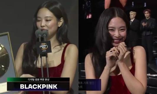 제니는 멤버들을 언급하며 “멤버들이 없어서 제가 지금 말을 못 하고 있지만 지수, 로제, 리사도 너무너무 행복할 것 같다”며 “제가 오늘 이 상을 받도록 하겠다”고 전했다. 끝으로 “테디 오빠 항상 감사드리고 사랑한다”고 덧붙였다.