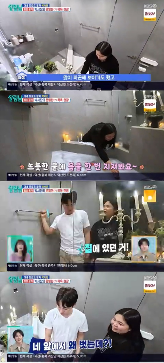 박효정은 박서진이 거품목욕을 즐기는 동안 "고생했으니까 끓여준다"면서 숙취해소에 도움이 될 해장찌개를 만들었다.