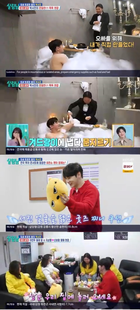 박효정은 박서진을 위해 거품 목욕을 할 수 있도록 욕실을 꾸미기 시작했다. 욕실에 들어선 박서진은 "집 치우기 힘들게 해놨네"라고 투덜거렸다.