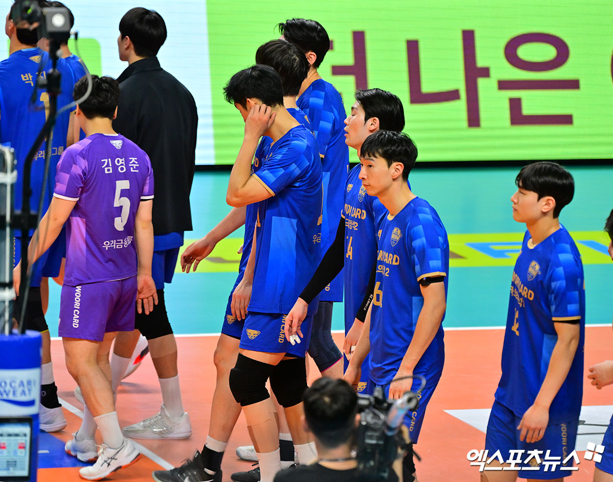 우리카드 ‘홈에서 패배라니’[포토]