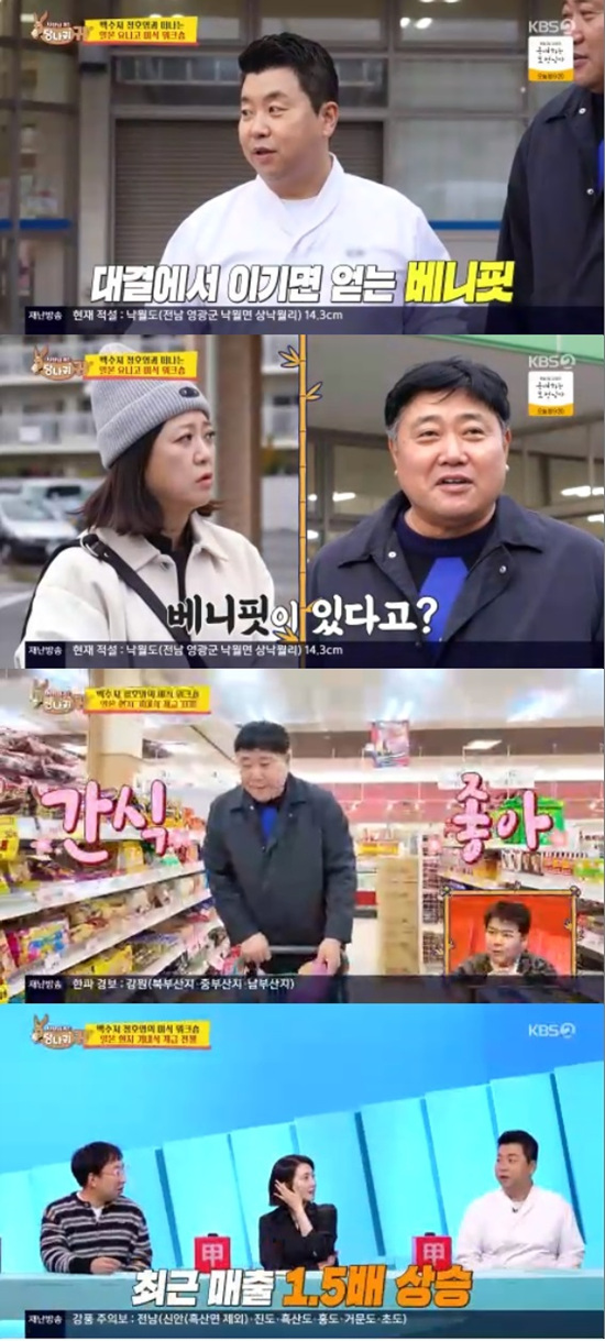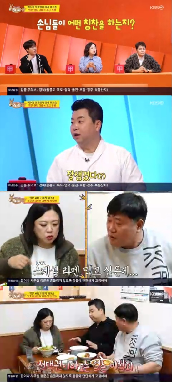 11일 방송된 KBS 2TV '사장님 귀는 당나귀 귀'에서는 정호영이 김숙, 양준혁과 함께 일본 요나고로 떠나는 모습이 전파를 탔다.