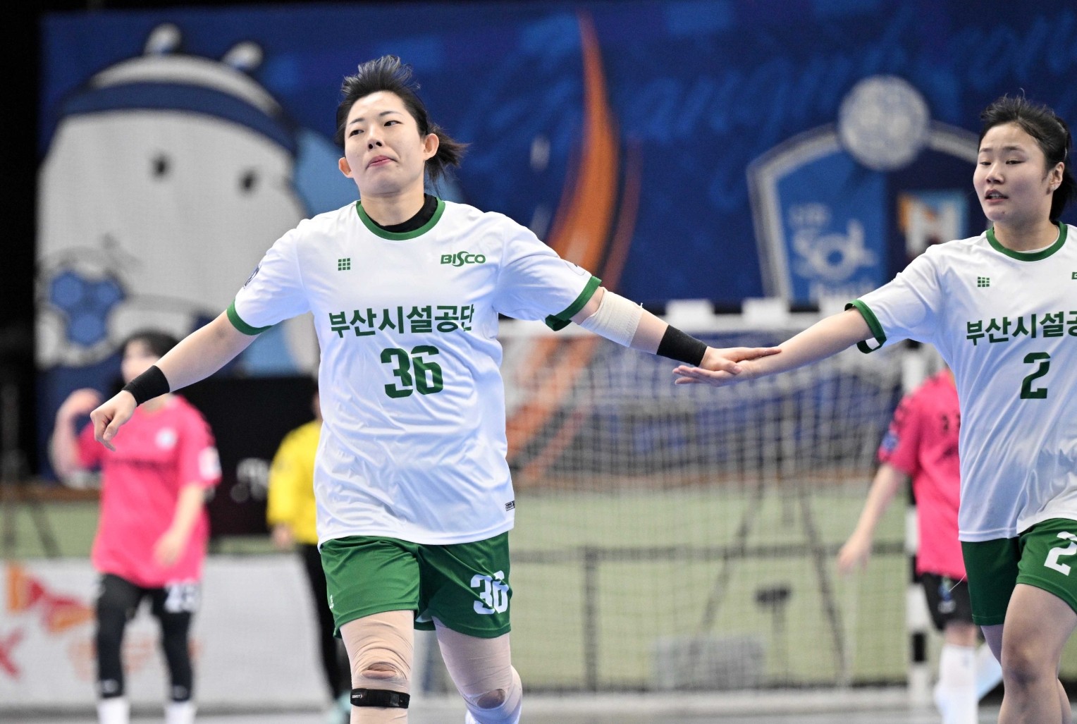 경남개발공사는 부산시설공단의 실책에도 달아날 기회를 연거푸 놓치면서 1, 2골 차의 팽팽한 흐름이 이어졌다.