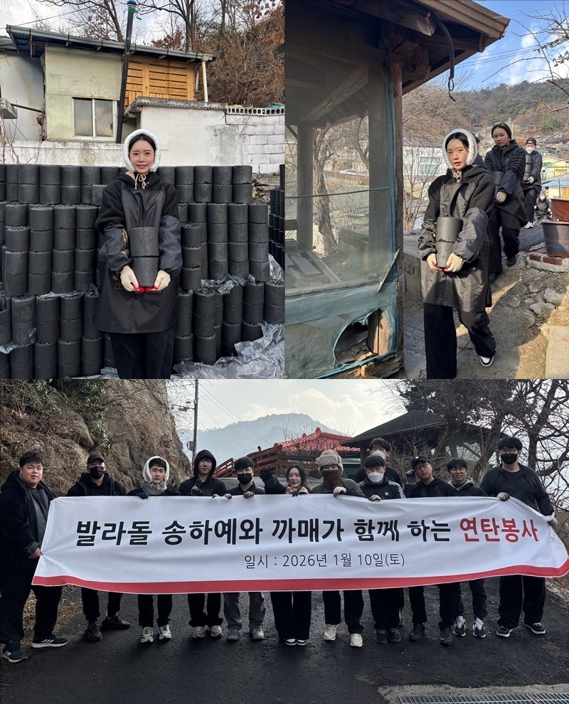 'SNS 화제' 송하예, 무대 밖 선한 영향력 포착…팬덤과 연탄 봉사