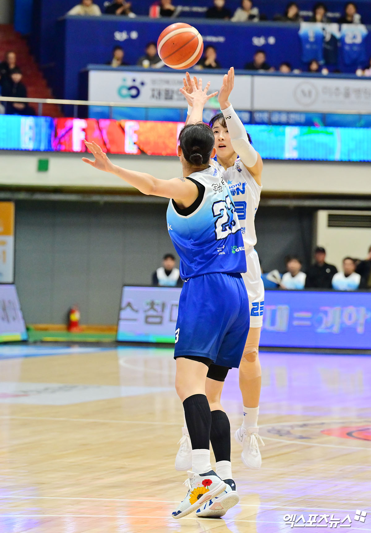 (엑스포츠뉴스 인천, 김한준 기자) 12일 오후 인천광역시 중구 도원체육관에서 열린 'BNK 금융 2025-2026 여자프로농구' 신한은행과 우리은행의 경기, 우리은행 김단비가 3점슛을 시도하고 있다.