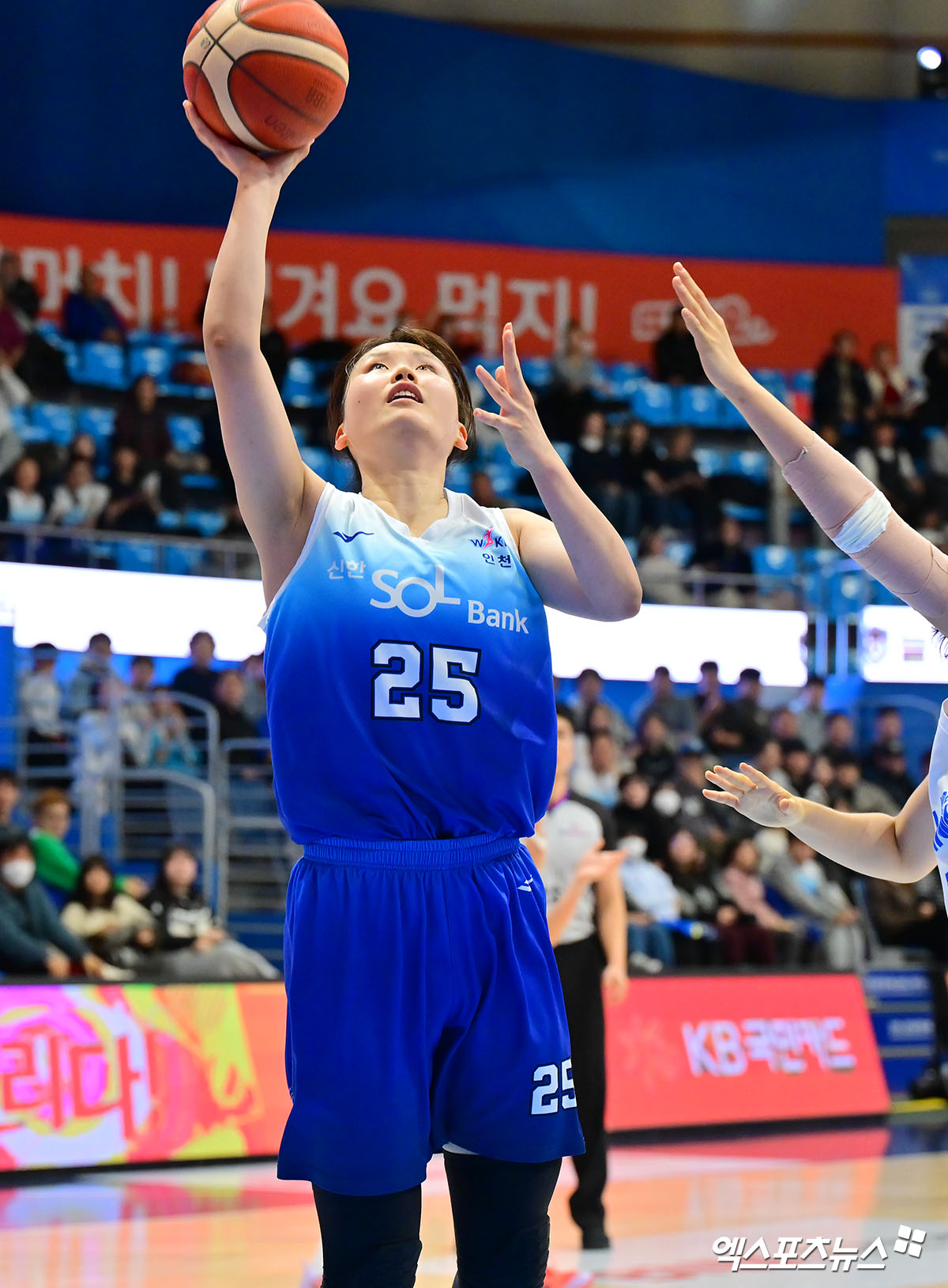 (엑스포츠뉴스 인천, 김한준 기자) 12일 오후 인천광역시 중구 도원체육관에서 열린 'BNK 금융 2025-2026 여자프로농구' 신한은행과 우리은행의 경기, 신한은행 미마 루이가 골밑슛을 시도하고 있다.